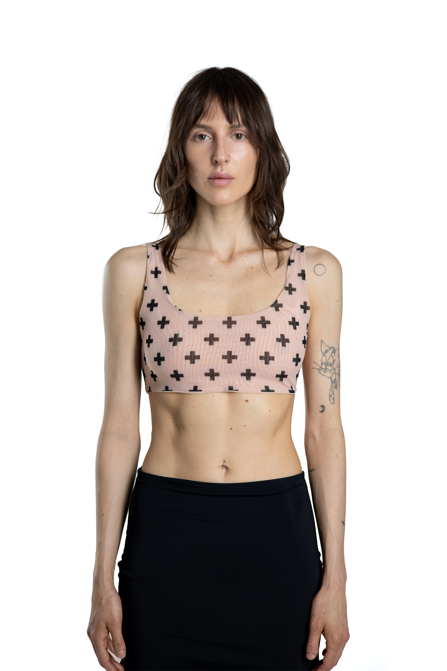 СЕТЧАТЫЙ ТОП С ПРИНТОМ КРЕСТИК МИНИ ТЕЛЕСНЫЙ